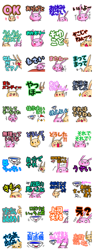 デカ文字 うさぎの部下とおちょこ先輩 スタンプ画像一覧