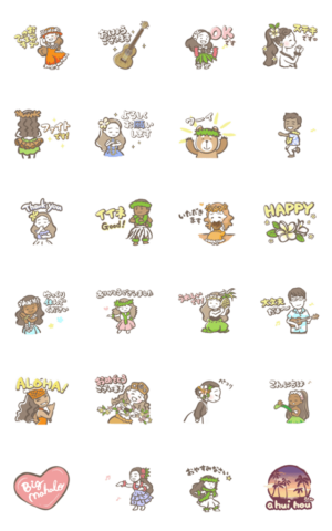 ▶動くフラ タヒチアン ウクレレ日常会話 スタンプ画像一覧