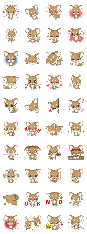 チワワたん第三弾!可愛い、おもしろい、ゆるい表情がいい!どんな時でも顔文字絵文字の用に使える!チワワ、犬、動物好きを始め、沢山の人に楽しんで使えるスタンプです小島千枝 より発売