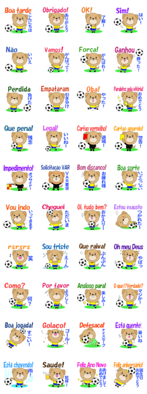 サッカー・フットサルのプレーヤ―や観戦・応援好き専用ラインスタンプです。ポルトガル語と日本語バージョンです。