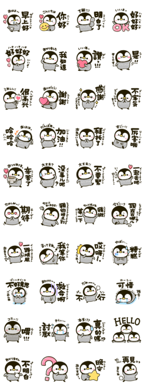 毎日使える中国語ペンギン♡日本語同時通訳付き。 中国語の勉強や日本語の勉強にもオススメ‼︎ 家族や友達、彼氏や彼女、みんなで使えます。