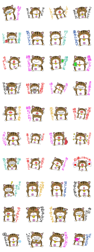 方言! 広島にゃんこ Vol.2 スタンプに書いてある文字一覧