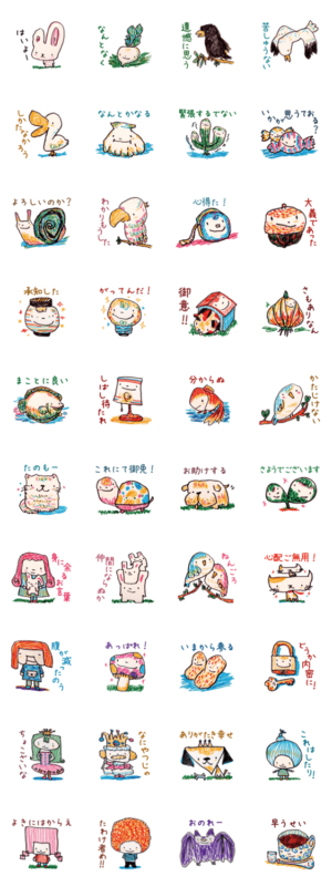 ペンで描いた仲間たち6。お返事編 スタンプ画像一覧