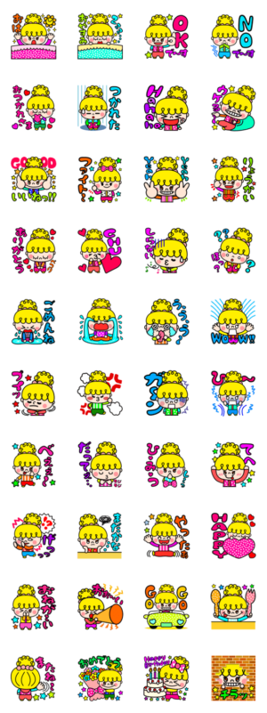 カラフルなサルエルちゃんの、かわいい文字入りスタンプです。hinco より発売