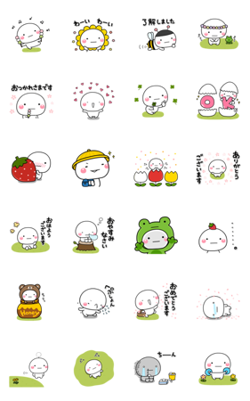 しろくてまるいキャラクター「しろまる」の春スタンプです。毎日使える内容のみを厳選している無難な白キャラスタンプです。【作:いしいともこ】