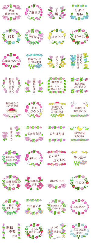 大人女子ほんわか日常会話使えるかわいいお花畑スタンプ敬語丁寧語/承認致しました/了解です/ありがとうございます/お願いします/お大事にして下さい/おしゃれ