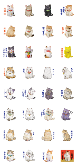 動物を擬人化したイラストレーションでお馴染み佐藤邦雄の招き猫のスタンプです。カプセルフィギュアで大人気!ここでしか見れないアイデアラフなども登場しています。Kunio Sato より発売