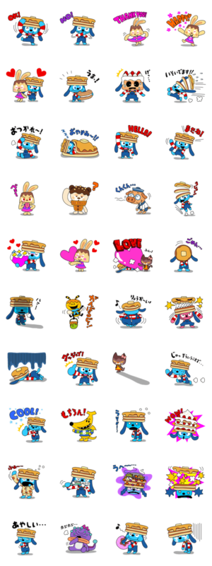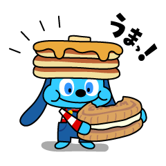 おやつの森に住むパンケーキ犬、パンクーのスタンプです。他にもプリン、クッキー、チョコレートなど、おいしいおやつアニマルがスタンプになって続々登場!株式会社ポリゴン・ピクチュアズ より発売