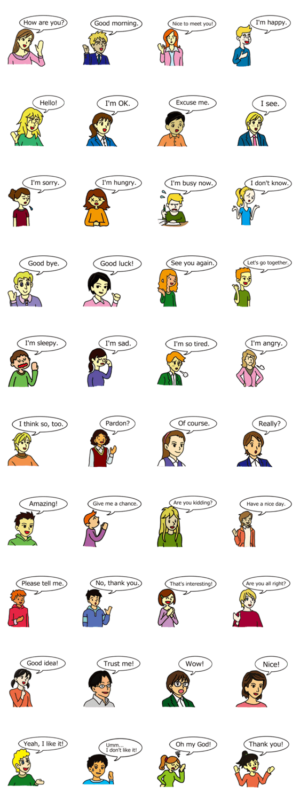 忘れがちな基礎英語。スタンプでもう一度おさらいしましょう。送った方も貰った方も、日常英会話のスキルアップ間違いなし。もう一度中学生気分に戻りたい方にもオススメ。イロモノヤ より発売