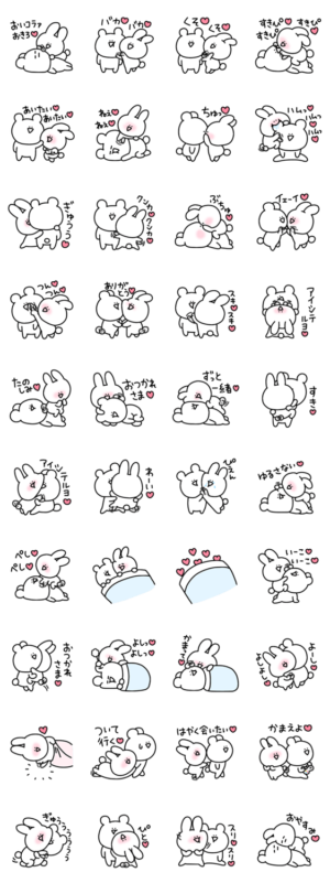 シュールでゆるすぎるミニうさぎ&ミニくまのラブラブスタンプです♥eribo より発売