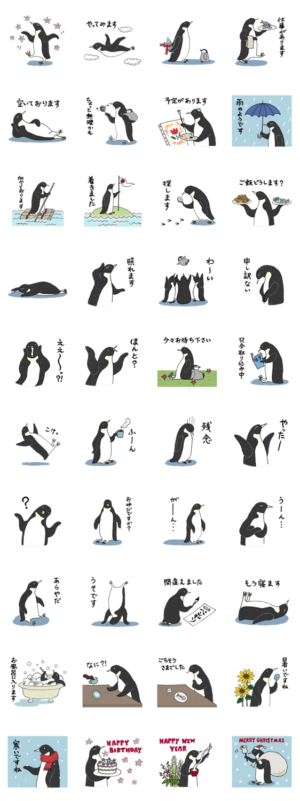 ユーモラスなペンギンたちの日常生活を、コミュニケーションのお供にお役立て下さい。Toko Furusawa より発売
