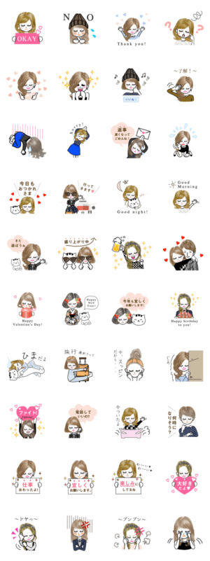 学生からOL、主婦までオシャレが大好きな女性にぴったりの可愛いスタンプです。日常会話やイベント、恋愛などに使えます。クリスマス&お正月&誕生日スタンプもあります。