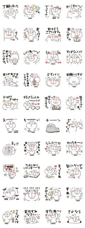 うさぴのスタンプ第5弾です!絵文字で活躍していた【うさぴ】がスタンプになりました。見やすいデカ文字気味です。かなぴ より発売