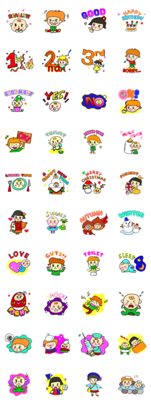 1.2.3baby!子育てママの赤ちゃんスタンプ スタンプに書いてある文字一覧