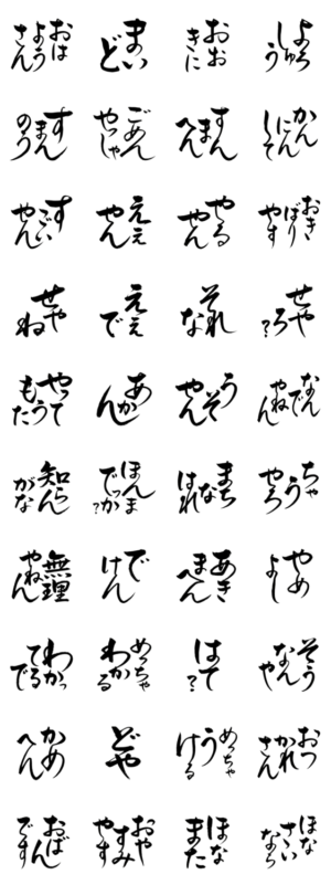 楽しい♪関西弁でご挨拶~たおやか筆文字4 スタンプ画像一覧