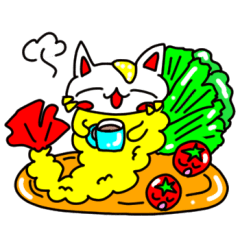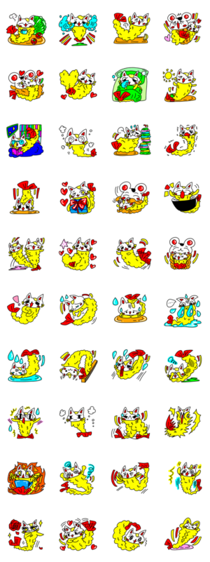 白猫のようなえびのようなにゃんこのようなそんなスタンプです。きらとも より発売