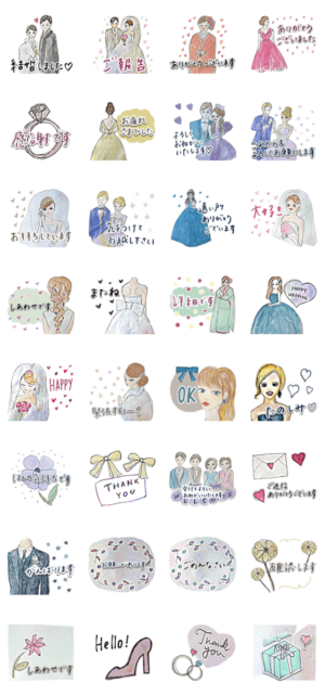 水彩画でオシャレ結婚式♡ スタンプ画像一覧