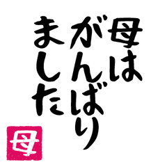 お母さんが家族で使いそうな言葉を集めました。シンプルな筆文字に【母】のハンコをつけました。ishiim より発売
