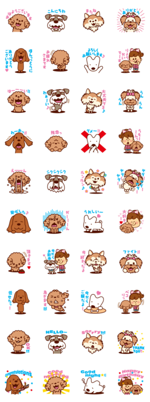 犬服ブランドOttyデザイナー・大原かおり企画のスタンプ♡ プードル,チワワ,ダックス,シュナウザー,ヨークシャテリアの可愛いワンコの使いやすいメッセージ入りスタンプ♪