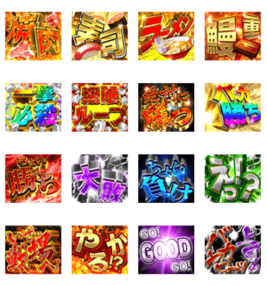 派手なギラギラした感じのタイトルのスタンプ第3弾です。 パチンコ屋のチラシ風のスタンプにしてみました!
