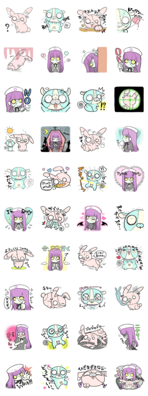 マロリースタンプ第三弾!ゾンビになったお人形達のスタンプです。うさぎとねずみと女の子の愉快なスタンプが、会話を盛り上げてくれること間違いなし!