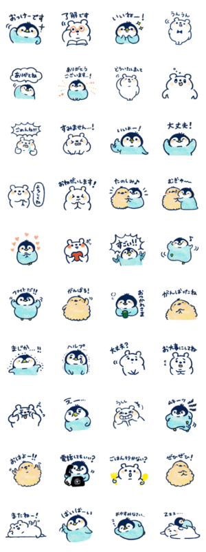 しろくまの「ぽーちゃん」とコウテイペンギンの「こうちゃん」に、 キングペンギンの「おうちゃん」が仲間入り! 日常的にご利用いただける、ゆるっとしたスタンプです。marmerry より発売