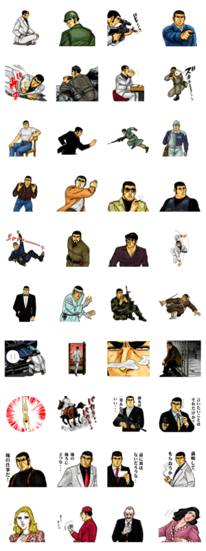 ゴルゴ13は、言葉ではなく顔や雰囲気で語るので、スタンプなピッタリでした。