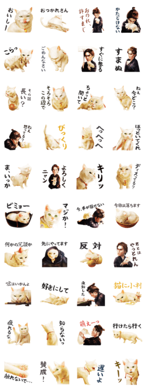 「猫侍」でお馴染み、強面剣豪・斑目久太郎と、愛猫・玉之丞がLINEスタンプに登場!ムッツリ剣客とマッタリ白猫であなたのトークに潤いを。AMGエンタテインメント より発売