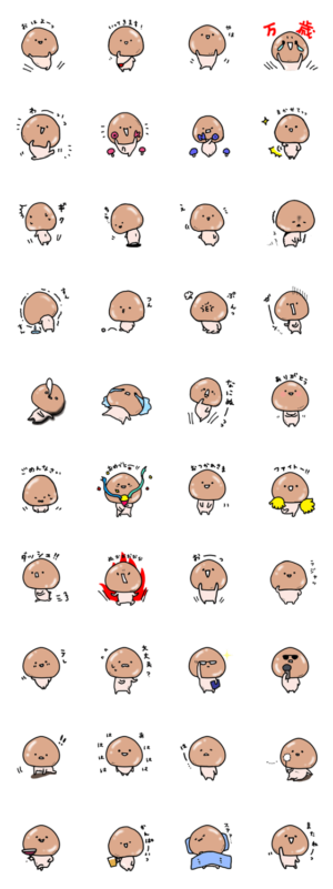 ちっちゃいキノコのゆるくてかわいいスタンプですmana より発売