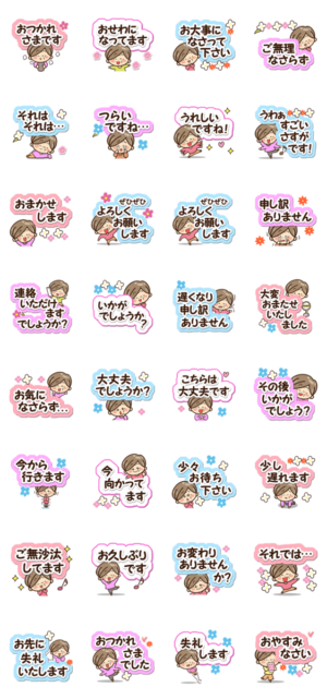 『おばあちゃんスタンプ』から【大人な返信編】です。真面目に丁寧に優しく応えるのに最適です。どなたにでも使えるスタンプです。ばあばやお母さん、おばあちゃんにぜひ。