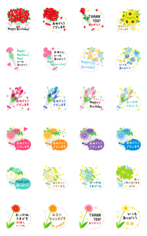 母の日のカーネーションやお洒落な花束、ブーケ等。誕生日祝いもあります。バラ、チューリップ等の手描きイラストで華やかにお祝いしてね。贈り物やプレゼントにもどうぞ。