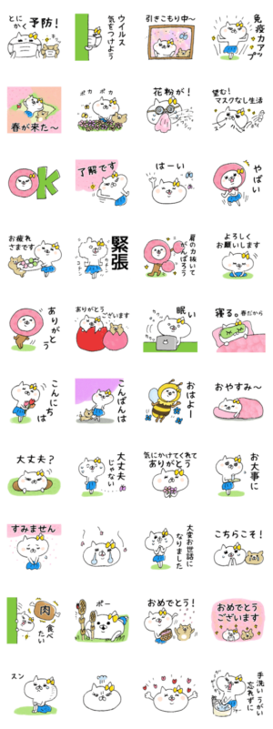 女子力高めな白猫、ネコ子の春スタンプ第2弾です。すっかりコロナ疲れな毎日だけど、しっかり予防して、この大変な状況をみんなで乗り越えようー!OTOBOOK より発売