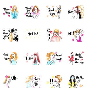 オシャレでモードな動く女の子スタンプの英語バージョン第二弾。 オシャレでモードな女の子が、表情豊かに気持ちを伝えます。 ファッションイラストでオシャレにスタンプ。