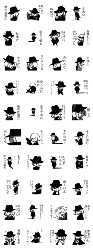 影の仕事に携わる犬のスタンプです。しぶくてかわいい生き様。村岡ユウ より発売