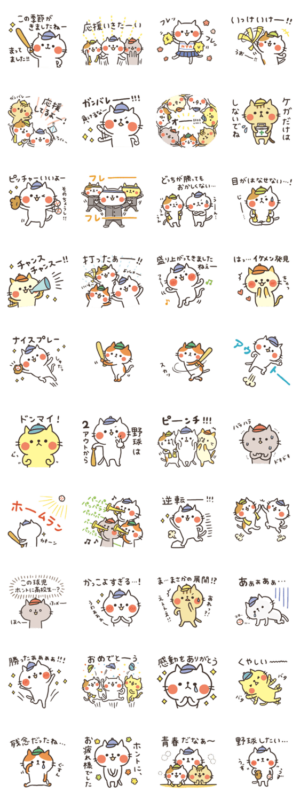 高校野球の季節がやってきました!!野球大好きにゃんこ隊と共に皆で応援しましょう♪野球を頑張る人たちへの応援メッセージや、普段の日常会話にもぜひ~!kazunoco より発売