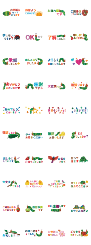 はらぺこあおむし省スペース敬語スタンプです。本当に省スペースです。
