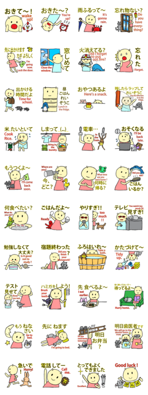 母親からこどもへ 朝から寝るまで 日常生活で伝えたいことをまとめてみました 小学生から大学生くらいのこども向けです 働くママの愛情いっぱいのスタンプです