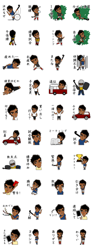 全国の陸上ホッケー部のためのスタンプ第2弾。男性フィールドホッケープレーヤー専用。別売りで女性プレーヤー専用スタンプもあるよ。