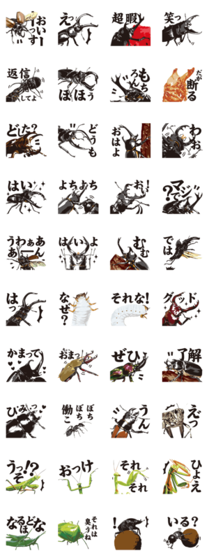 カブトムシ、クワガタムシ、カマキリ、フンコロガシとたくさんの昆虫がラインナップ。 昆虫返信で相手を驚かせてみてね。 「しろめ爆弾」「みんなの変顔」のスタンプ69作スタンプ69 より発売