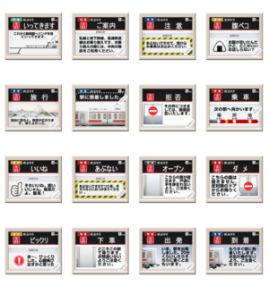 日本の鉄道や地下鉄の液晶ディスプレイです。私鉄の電車のパーツをアレンジしました。案内文を記入できます。 現在この商品は一部のスマートフォン版LINE 10.3.0以上のトークルームでのみ使用できます。動作環境の最新情報はヘルプをご確認ください。ヨシダアカリ より発売