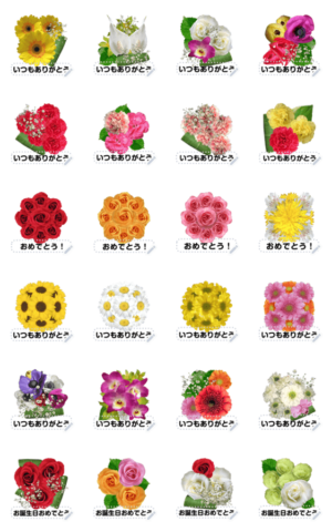 花束を贈りたい!その時、もう贈られる人も贈る人も幸せになっている。母の日、父の日、敬老の日、クリスマス、誕生日等、伝えたいメッセージを入力してお使いください。 現在この商品は一部のスマートフォン版LINE 10.3.0以上のトークルームでのみ使用できます。動作環境の最新情報はヘルプをご確認ください。ケイ&エイセイ デザイン より発売