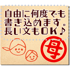 新機能のメッセージスタンプ。トークルームで、その場で文章を入力して送信できる便利なスタンプ♪母/ママの付箋。名前判子付き。家族連絡に。ねことうさぎの山田まぽん作 現在この商品は一部のスマートフォン版LINE 10.3.0以上のトークルームでのみ使用できます。動作環境の最新情報はヘルプをご確認ください。山田まぽん/名前スタンプ より発売