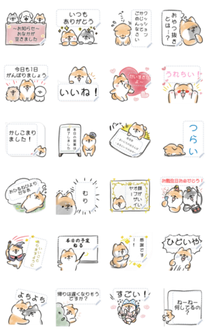 任意のメッセージを入力できる柴犬のスタンプです 現在この商品は一部のスマートフォン版LINE 10.3.0以上のトークルームでのみ使用できます。動作環境の最新情報はヘルプをご確認ください。