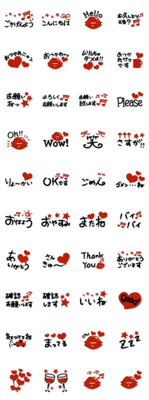 赤と黒のみの、シンプルなスタンプです。ぷりんちゃん より発売