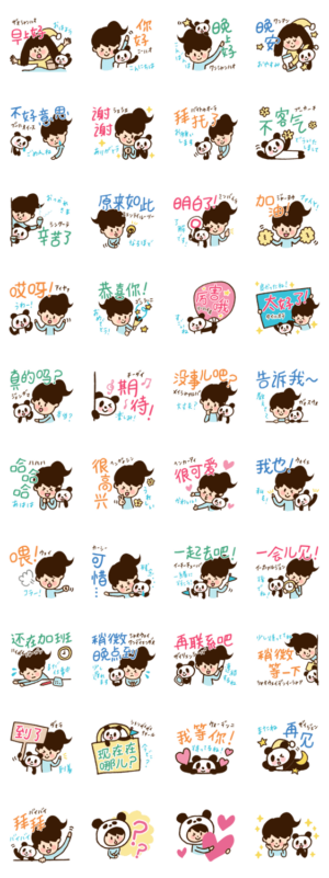 中国や台湾好きの方のために作りました!女の子とパンダが中国語で気持ちを伝えるスタンプです!読み方と日本語訳付き!※カナ読みは参考程度としてご使用下さい。