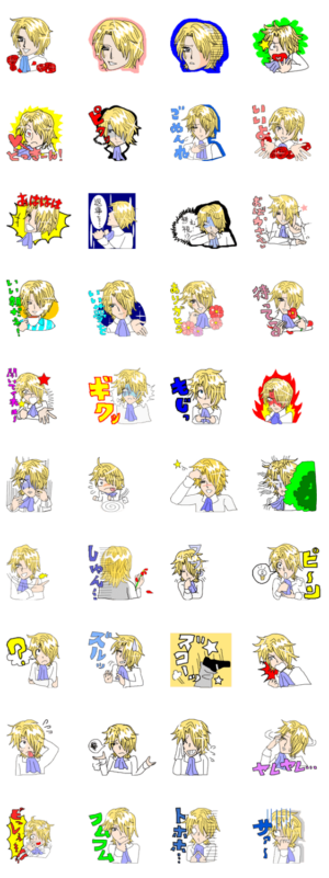 一昔前の少女マンガの男の子です。ちょっと古いリアクションのスタンプです。itou より発売