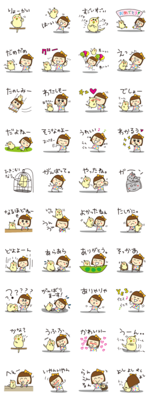 とってもかわいい、みんなのアイドルのめめめちゃん。日常会話で使えるスタンプ。今度は仲良しのちーたちゃんと。シマ子ちゃん、はな子さん、トメ子さんとおともだちです。