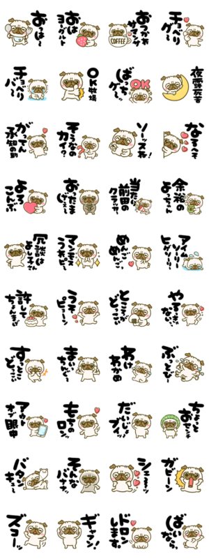 昭和テイストな懐かしの流行語やダジャレが満載♪毎日使えるパグちゃんのスタンプ!ぴよたぬき! より発売