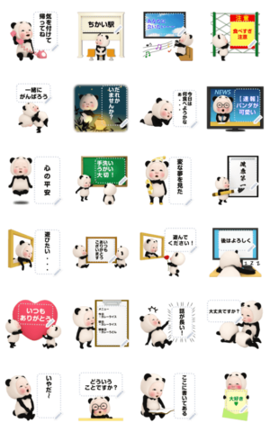 キモかわいいパンダのキャラクター。自分の好きな文面にできて、使い勝手が良い!