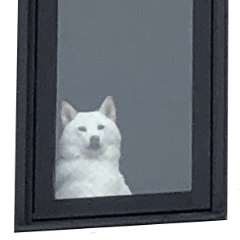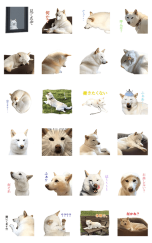 白い柴犬「チョビ」のスタンプです。やつめ より発売